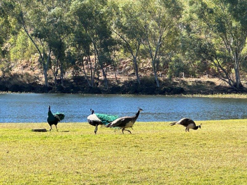 We visited Lake Moondarra just north-east of Mount Isa, for a picnic.  This artificial lake was built in the Leichhardt river.  We were surprised with the amount of peacocks around the lake.  Just in the picnic area, we counted 14.  The peacocks apparently originated from a former mine manager’s pet peacock named Percy.