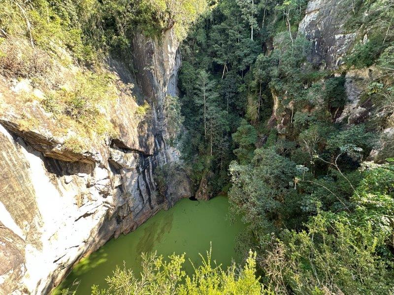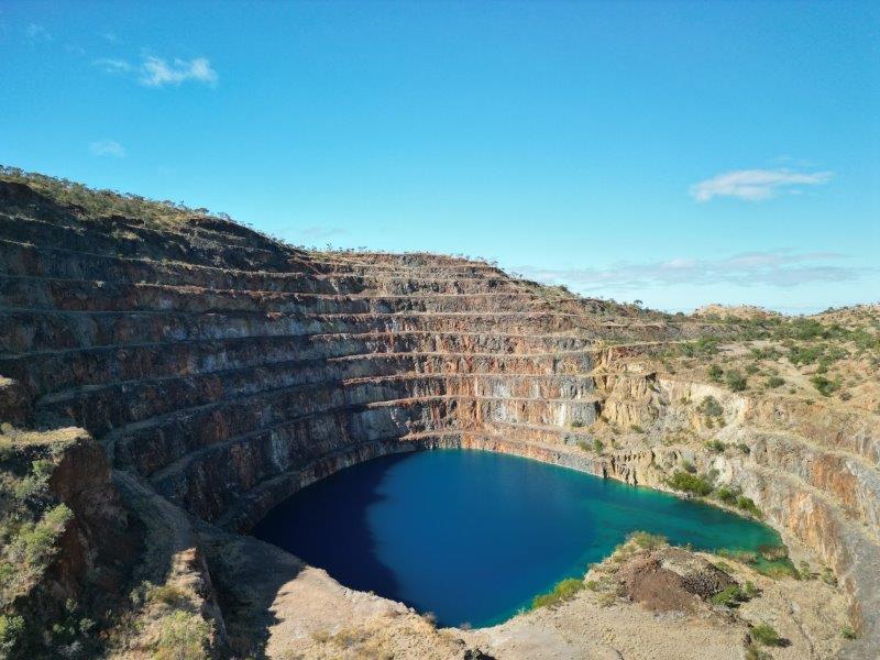 The crater is in the Hugh Nelson Range.   This crater is a 70m wide granite volcanic pipe.  The drop to the water level is approximately 50m.