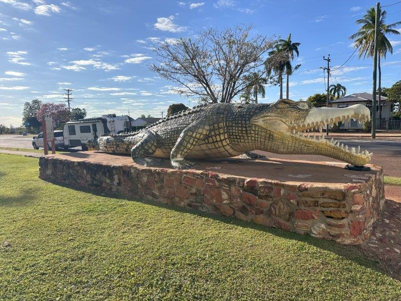 Krys the Croc is in the main street of the town, at the council offices.  Krys is a life-size replica of a local 8.65m crocodile, shot on the McArthur river bank.  This croc was killed with a single shot by Krystina Pawlowski, the famous Polish Crocodile hunter, in 1957.  This size of the croc earned her a place in the Guinness Book of Records.  In true Aussie fashion her nickname in the town became “One Shot”.