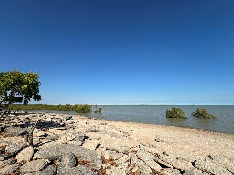 The foreshore opens up to the Gulf of Carpenteria.  This gulf has only two tides per day compared to the normal four.  This is referred to as a diurnal tide.  The moons position relative to the earth creates this phenomena.  The Gulf on Mexico and the Caribbean sea are examples of other places with only two tides.