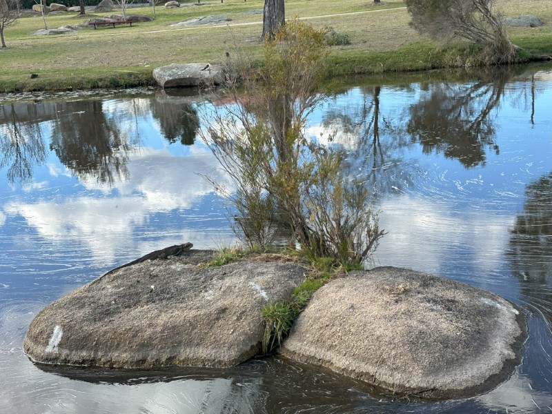 Quart Pot Creek runs through Rotary Park around large granite boulders. While we were there, an Australian Water Dragon was on a rock soaking up the sun.