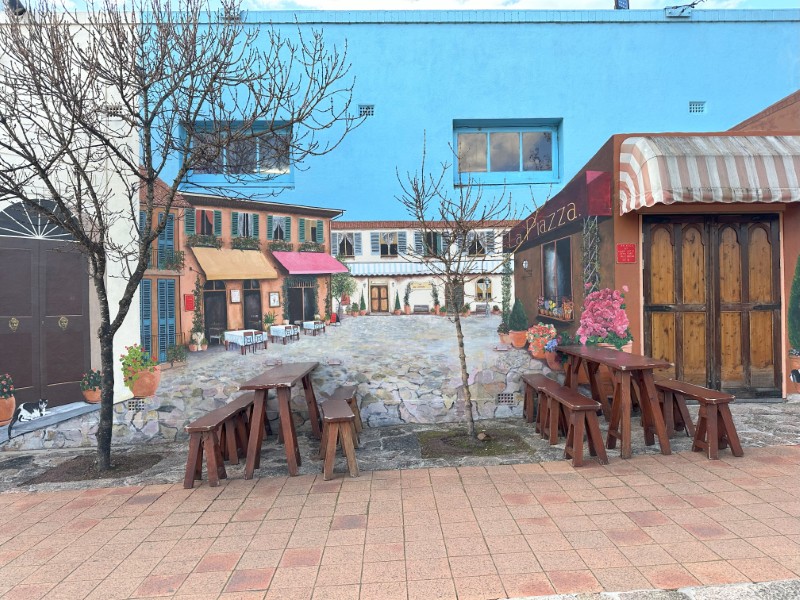 Just behind The Big Apple is a massive store with a restaurant. The store sells a variety of wine, pasta, cheese, coffee and olives.