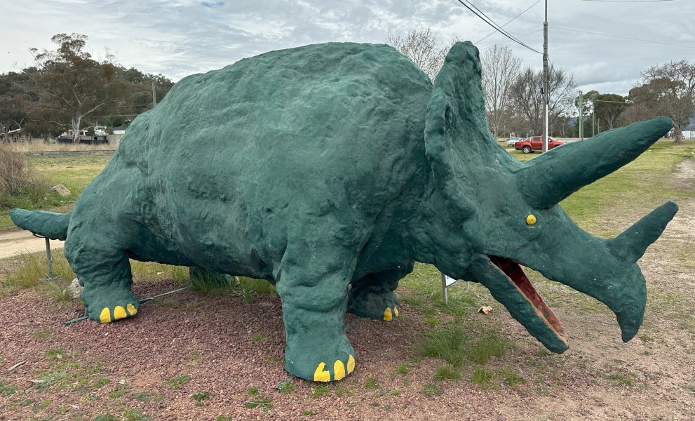Back on the main road we stopped at The Big Dinosaur in Ballandean. This triceratops started it’s life in 1998 on a float during the Apple and Grape Harvest festival and found a permanent home at the station. It seems like this triceratops had a recent pedicure.