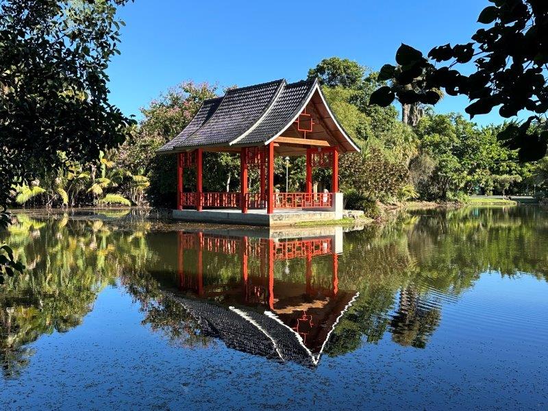 The Chinese Friendship Garden borders a massive pond with ample birdlife and we even saw a small turtle drifting on a coconut.
