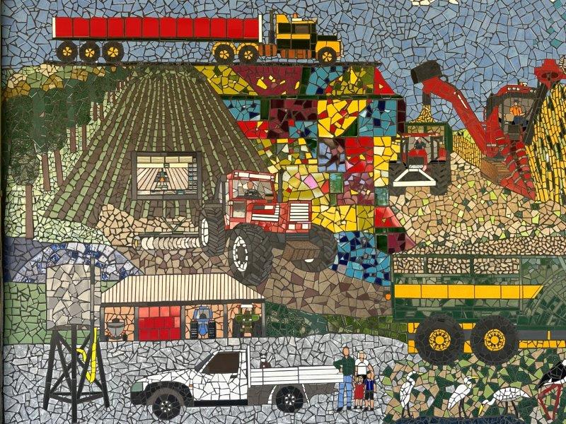 In downtown Ingham is the Mercer Lane Mosaic display, narrating the history of cane cutting and the sugar cane industry in Ingham. Karen Venables and artist Kate Carr involved 1500 locals and visitors to create the mosaic display covering a total of 42m.