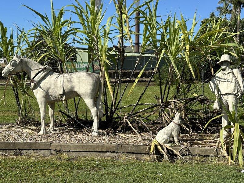 From Menu Creek we went to Tully, one of the wettest towns in Australia. Tully is in the heart of sugar cane country and has a mill operating 24/7. Just outside the mill is a display in remembrance of the Tully sugar pioneers.