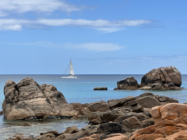 From Busselton we followed the rugged coast west to Cape Naturaliste. We stopped at a few beaches and places of interest on the way. Point Picquet was a good vantage point over Gannet Rock .