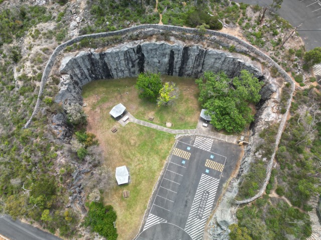 Adjacent to the Wellington Dam wall is the historic granite site. Granite from this site was used to build the dam wall. The wall was a job creation initiative during the great depression. This initiative created a dam that purposefully served the community for almost 100 years.