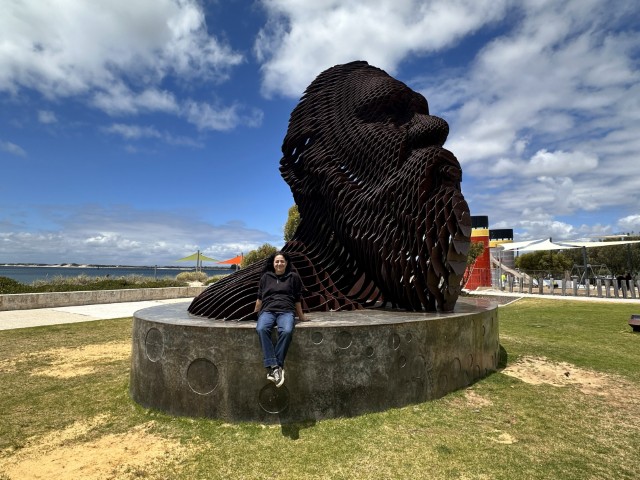Our first giant was Seba’s Song, overlooking the Mandurah waterways. The 5m high sculpture dwarfs the visitor at its foot.
