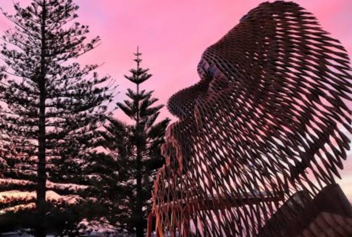 The 5.5m Wardandi Boodja head sculpture is in Koombana Bay. The 4.2 tones sculpture is a composite of faces of various traditional leaders.