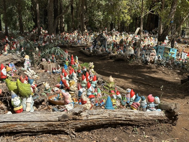 Gnomesville is a small patch of land near Wellington Mill in the Dardanup area. Travellers are generally encouraged to only leave their footprints behind, but not at Gnomesville. The idea is that travellers can bring and leave their own gnome at Gnomesville as a token of their visit.