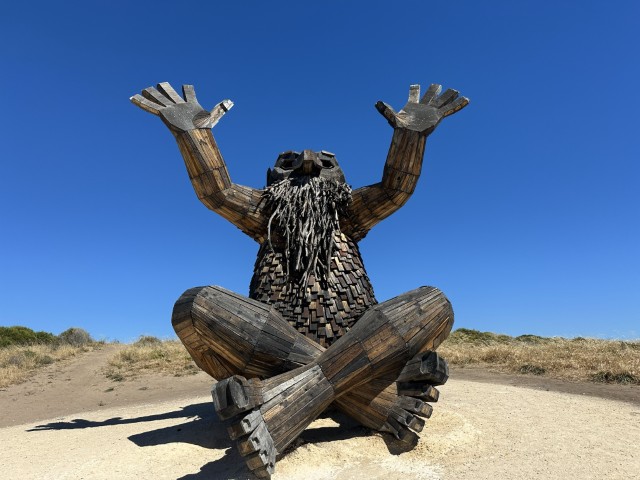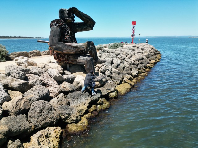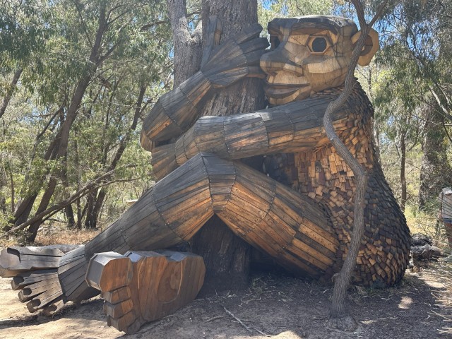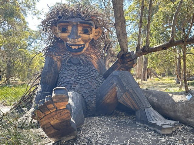 One of the best known tourist attractions in Mandurah is the giants. These wooden sculptures were created by Thomas Dumbo in 2022 from recycled material. Thomas is a Danish recycle art activist and have created these giant trolls across the world.