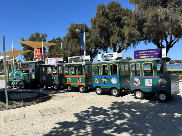 We visited Mandurah foreshore where the tourist fun train was parked and ready to take children and families across the esplanade. This is one of two fun trains available to explore Mandurah city. The small train is known as Mini Toot while its bigger brother Big Toot can accommodate groups of up to 60 adults at a time.