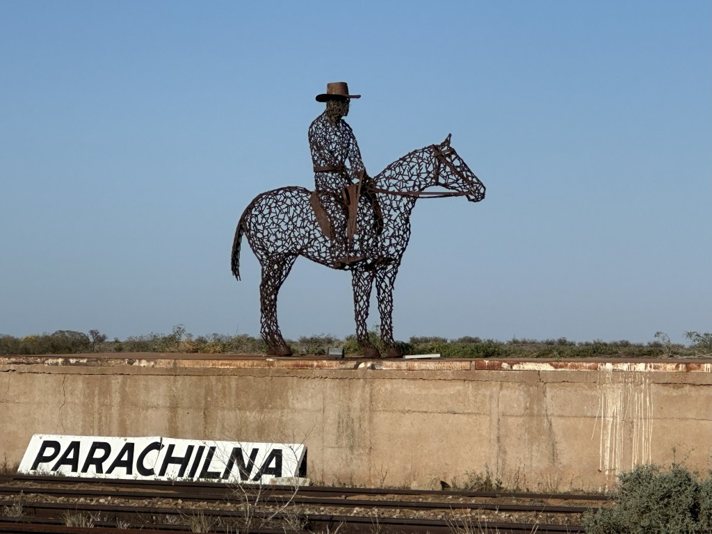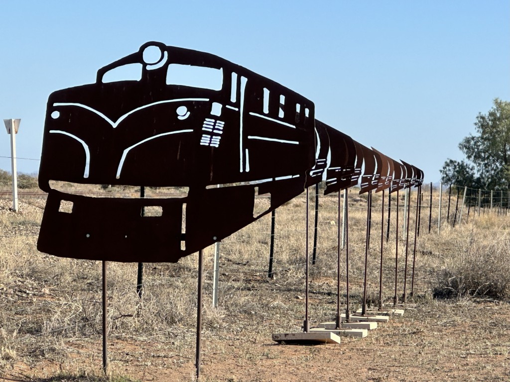 As a tribute to the Gahn train, a wrought iron sculpture was installed between the pub and the Parachilna railway station.