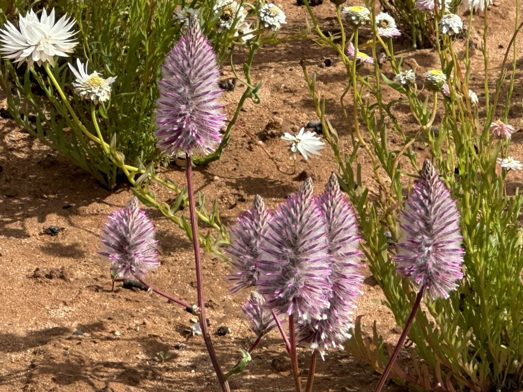 Because of the late rainfall, the pink Mulla Mulla and many other wild flowers were still in bloom when we visited the Australian Arid Lands Botanical Garden.