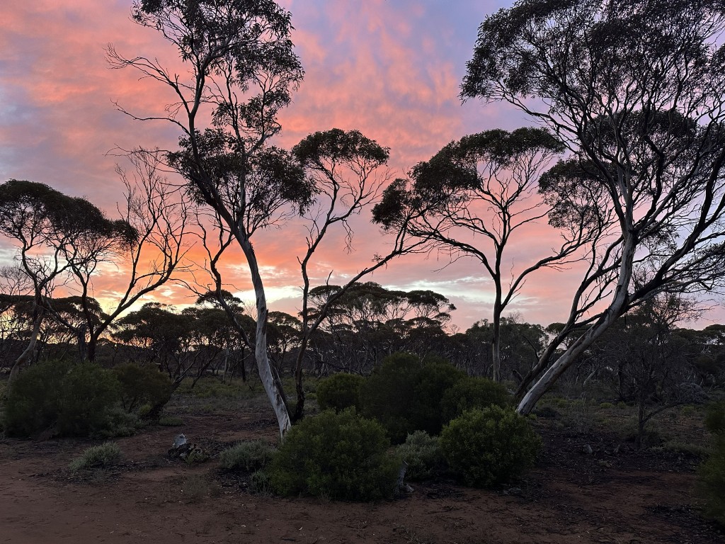 Our last camp on the Ayre Highway was Frazer Range Hideaway, where we stayed a few days. Once again, the night started with a great sunset behind the Mallee trees.
