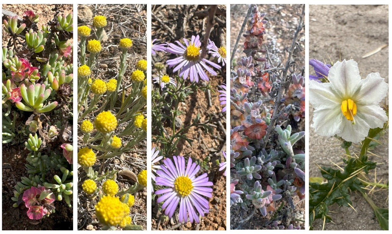 With the late rain many wild flowers were still breaking through the crust of the arid landscape.