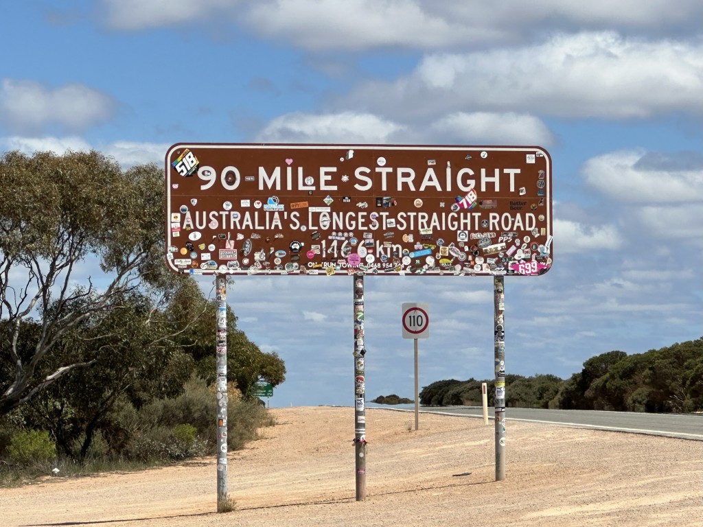 Just past Balladonia is the start of the 90 Mile Straight road. This almost 150km straight stretch of the Ayre Highway, links Balladonia and Caigun. It is the longest stretch of straight road in Australia. It used to be the longest straight road in the world until the 250km Highway 10 in Saudi Arabia surpassed it, in March 2018.