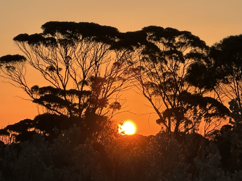 As the traffic faded we were in for a great sunset behind the Mallee trees.