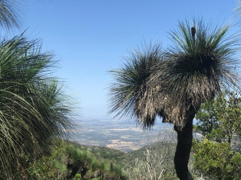 The mountain offers 9 different walking tracks, totalling 40km. The views and birdlife on the tracks we did, were spectacular. Old grasstrees show evidence of past bushfires.