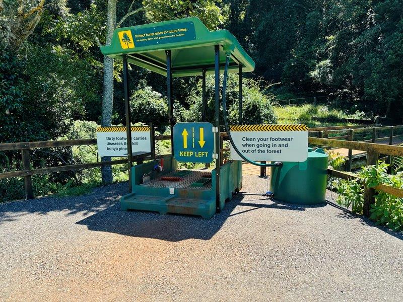 Shoe cleaning stations have been set up at the start of the walking tracks to help combat the spread of the disease.