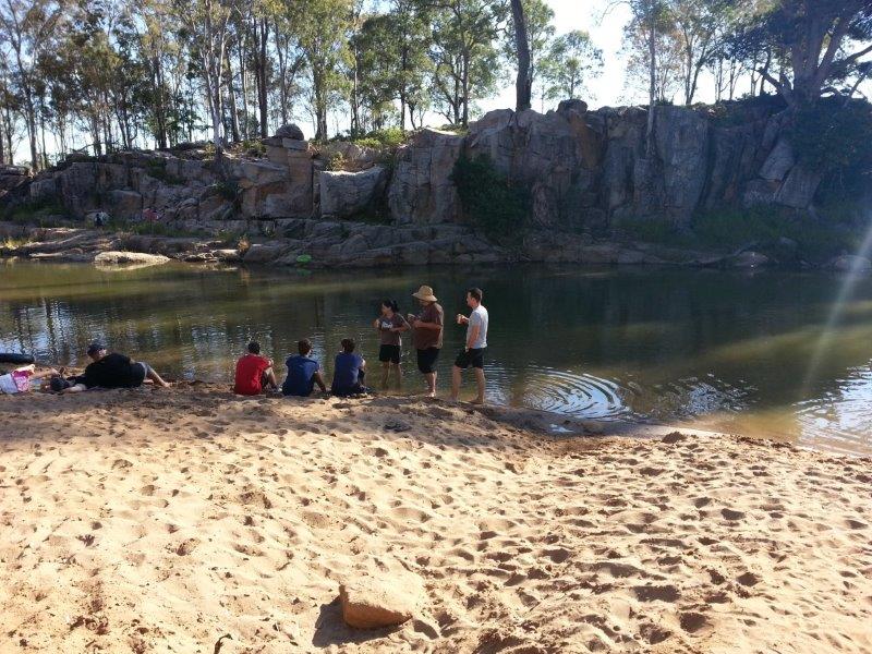Also on the western side of Brisbane we visited Murphy’s Creek, at the bottom of Toowoomba Range. The “beach” at Murphy’s Creek was well shaded and an ideal spot to cool off or have afternoon drinks.