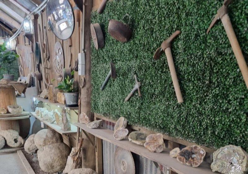 Various displays of vintage tools and homeware are scattered throughout the small historical town, like these cast iron kettles.