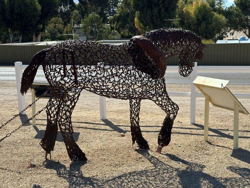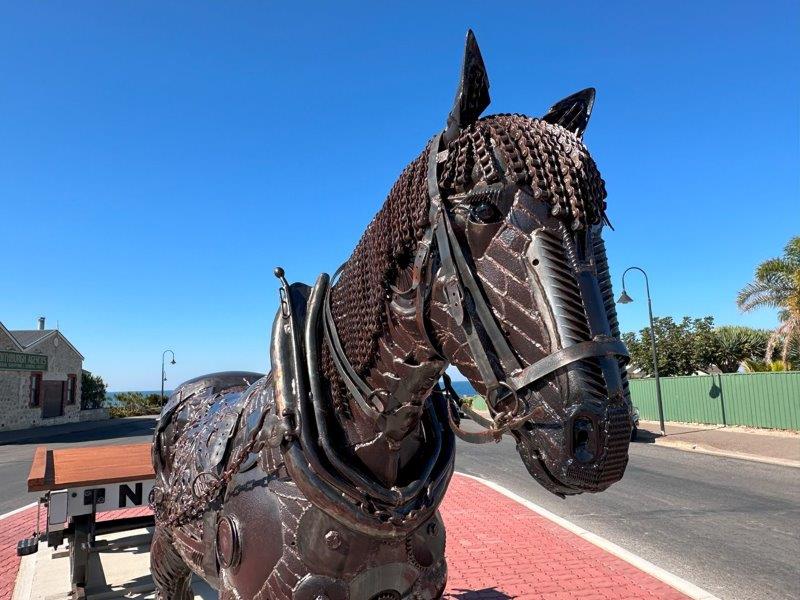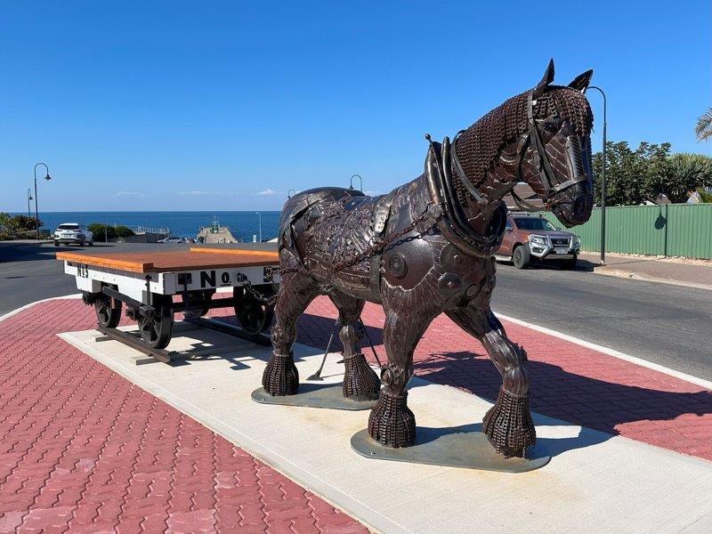 Just off the jetty of Edithburgh is a life size sculpture of Bonney, the Clydesdale horse. Clydesdales played a major role in getting cargo from land, along the jetty to ships.