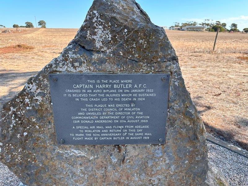 Harry was a local and unfortunately crash landed just outside the town in 1922. A plague was later erected on the crash site.