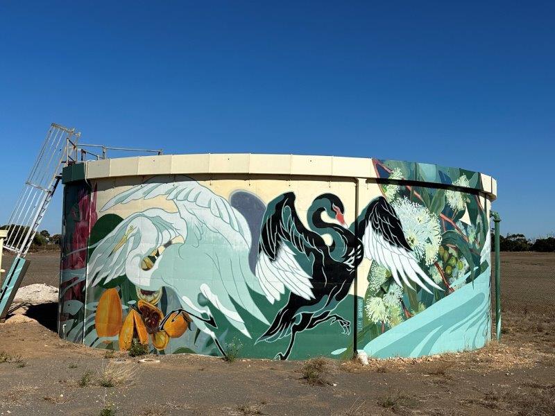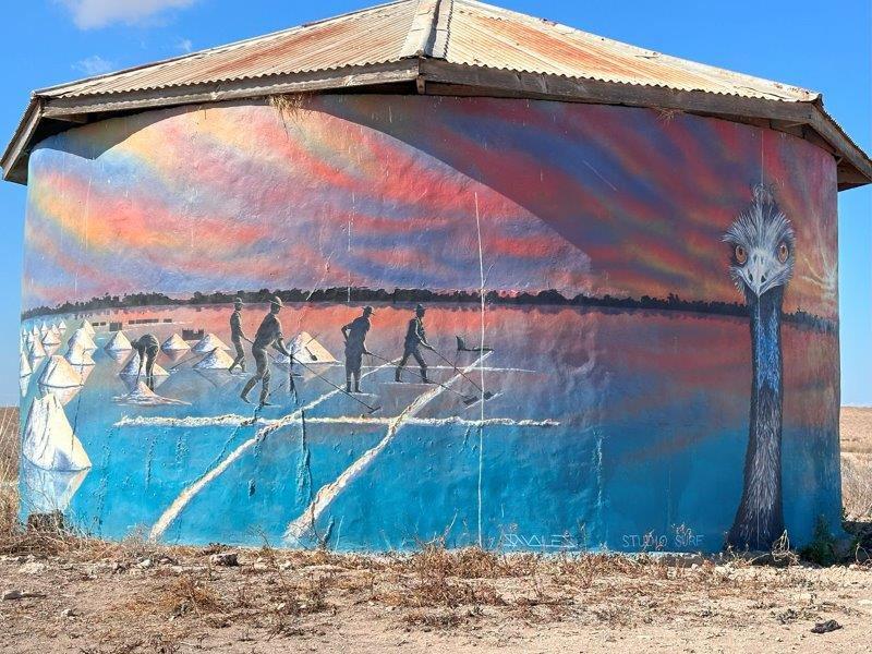 The Yorke is known for its water tower art and salt lakes. The southern Yorke Peninsula has established a water tower mural trail. As we explored the coastline we passed many painted water tanks and towers.