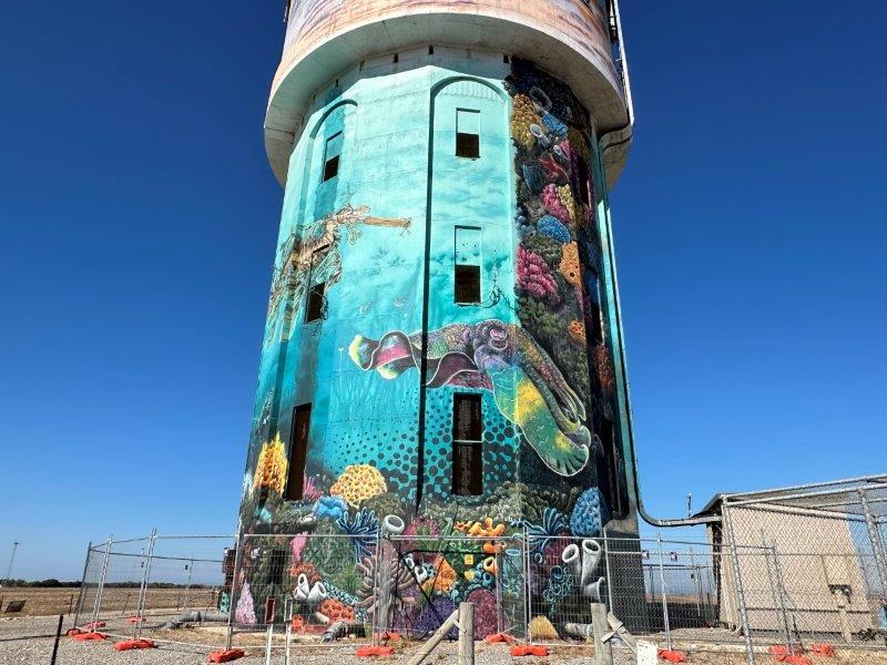 Edithburgh’s water tower reflect the abundance of sea life living under the local jetty.