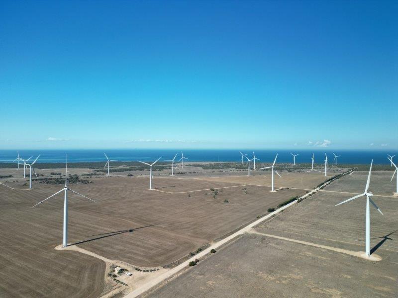 The Wattle Point Wind Farm is about 3km from Edithburgh. These 55 turbines have supplied the local grid with 91 megawatts since 2005. In 2005 it was the largest windfarm in Australia.
