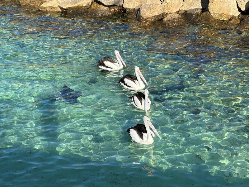 While at Point Turton, the Stingrays and Pelicans were passing under the jetty waiting for fish scraps from the fisherman.