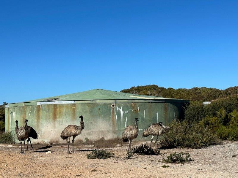 We took a photo of these emus in front of a water tank. It looks like a mural…