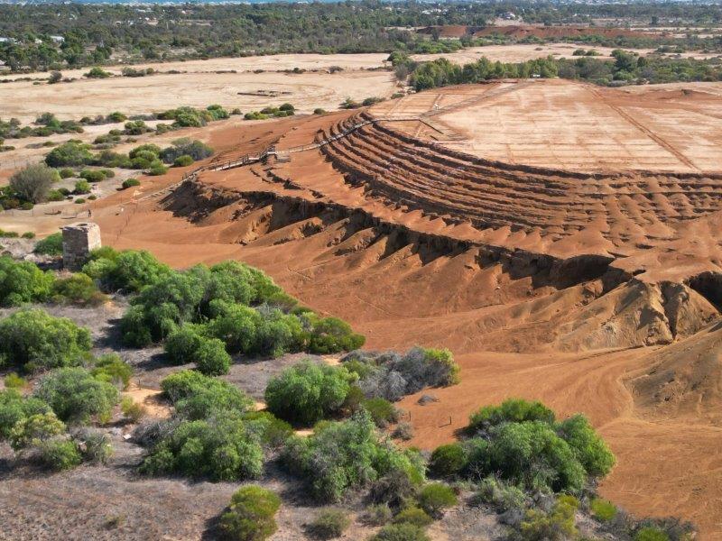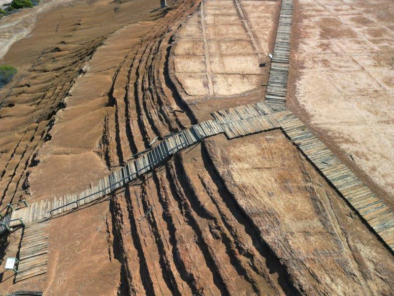 We stopped for two days in Moonta. The old copper mining sites are open to visitors. You can either follow the walking tracks or take the Moonta Mine Tourist Railway. Boardwalks takes you on top of the massive mounts of tailing resulting from the mining process.
